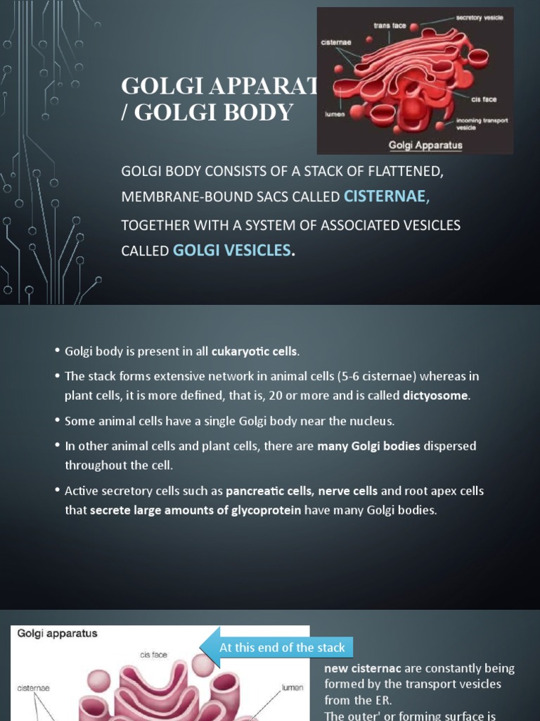 Cell And Functions from image.slidesharecdn.com In the nerve and liver cells golgi complex is scattered, in it each unit is called dictyosome. Golgi apparatus, organelle of eukaryotic cells that is responsible for transporting, modifying, and packaging proteins and lipids. = a golgi body, also known as a golgi apparatus, is a cell organelle that helps process and package proteins and lipid molecules, especially proteins destined to be exported from the cell. For more information about golgi vesicles and cells, you. Golgi apparatus consist of flattened membranous sac called cisternae. The golgi body is situated in the cytoplasm which is next to the endoplasmic reticulum. They are few in number. In plant cells, the golgi apparatus is the site of synthesis for complex polysaccharides that form a part of the cell wall of plants.